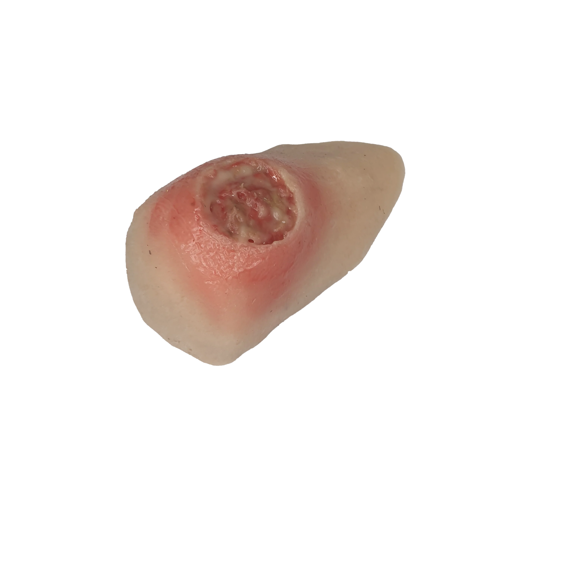 - For more realism make an opening in the heel of a sock . Fit the sock over the heel wound.